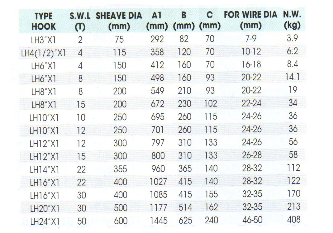 滑車具有一系列能夠承受2噸到50噸載荷的滑車